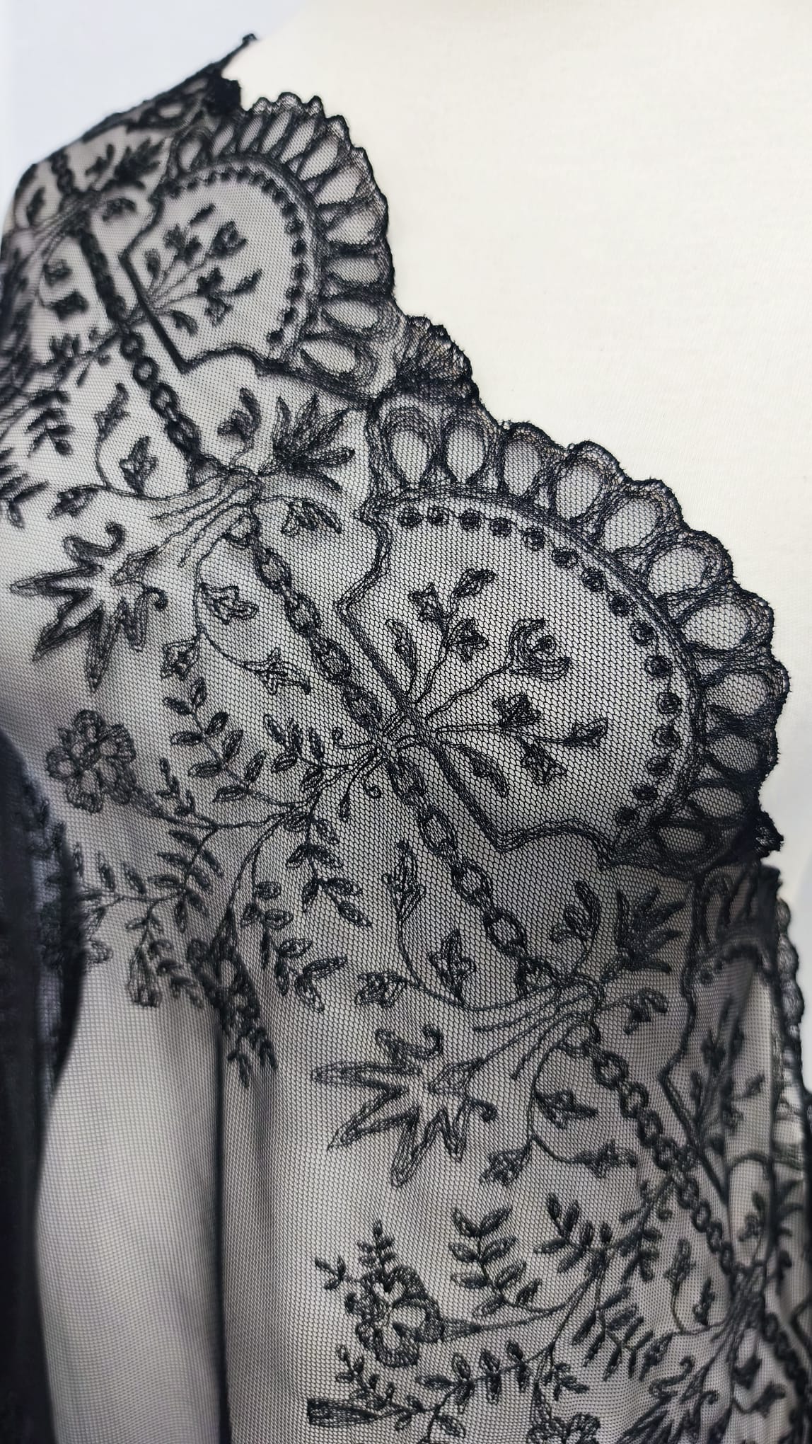 Mantilla de calidad premium realizada en bordado sobre tul de manera artesanal. Color negro.